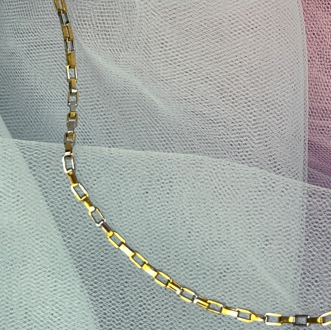 زنجیر آجری طلایی نقره ای 45سانت (یکی در میون طلایی ونقره ای)
