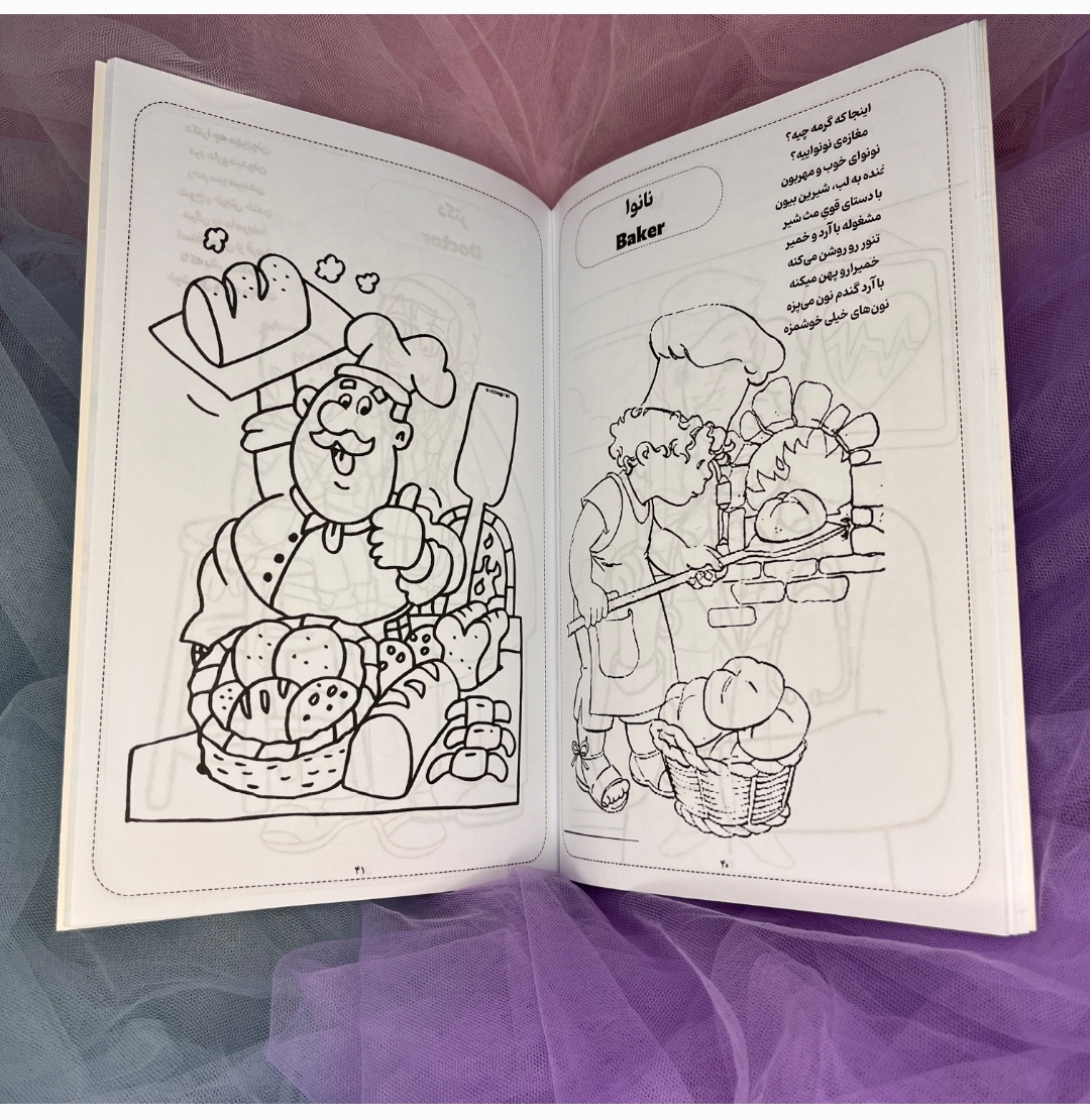 کتاب رنگ امیزی کودکان مشاغل همراه لغات انگلیسی همراه شعر