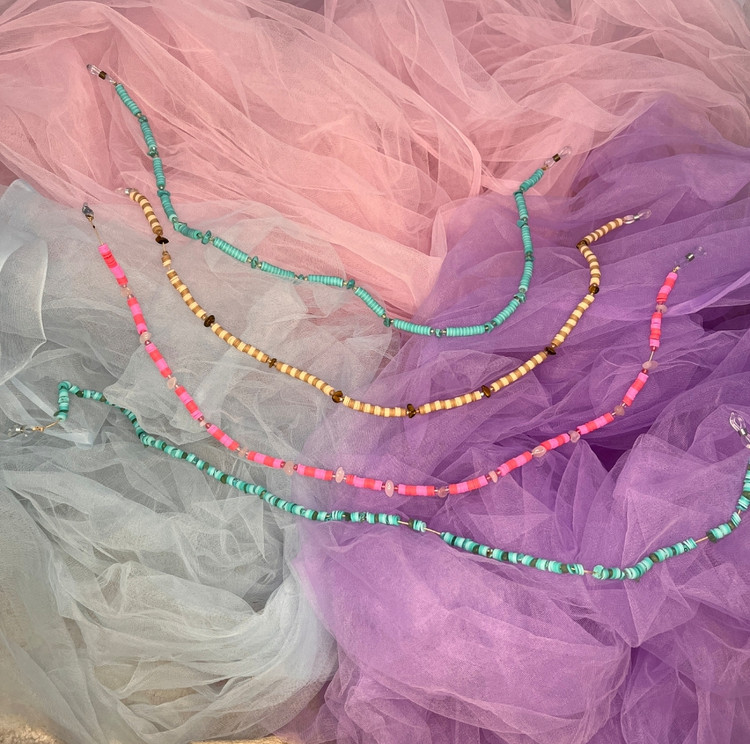 بند عینک با سنگ اصل وفیمو(رزکوارتز، چشم ببر، فیروزه، اونتورین)