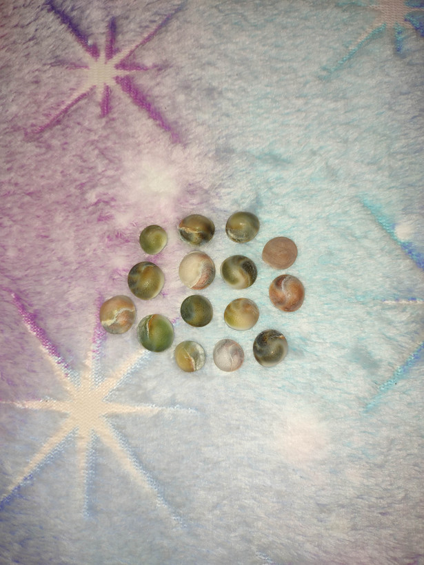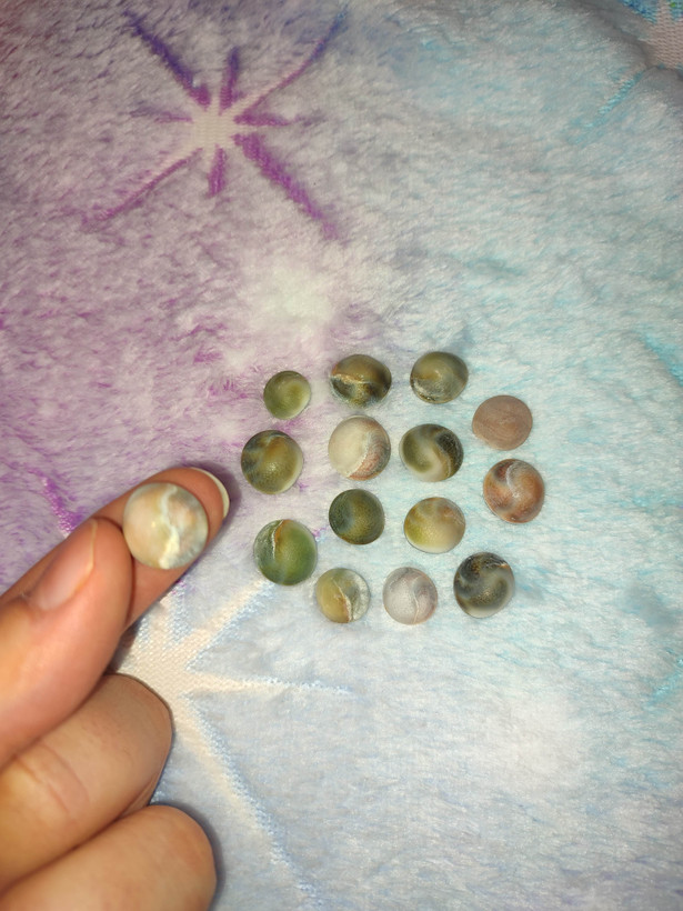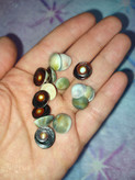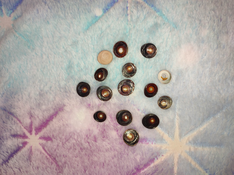 مهره سایز بزرگ تقریبا اندازه بند انگشت(پک پنج عددی، دومهره گرد، دومهره برنجی قهوه ای، یک استخوان) همراه دعا قرانی نماد جذب رزق ومحبت وعشق